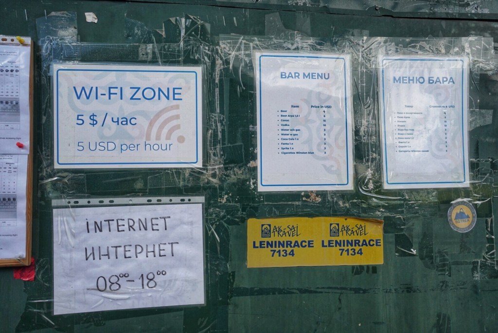 Over dinner, the Sherpa tells us that he has summited Everest fifteen times(!), so he isn’t particularly impressed when I tell him that we did the Annapurna Circuit back in 2011. Peak Lenin must be child’s play for him. The Polish couple is here without a guide, and they will be leaving at 3:00 in the morning to begin their summit attempt. We wish them well as they excuse themselves from the table to head to bed.