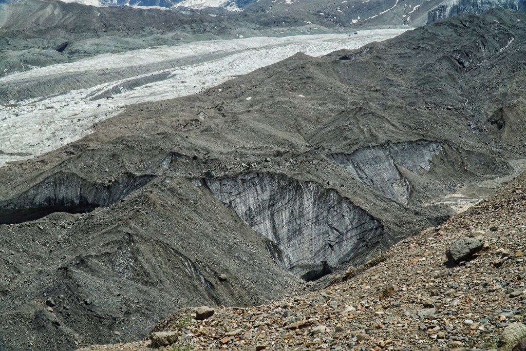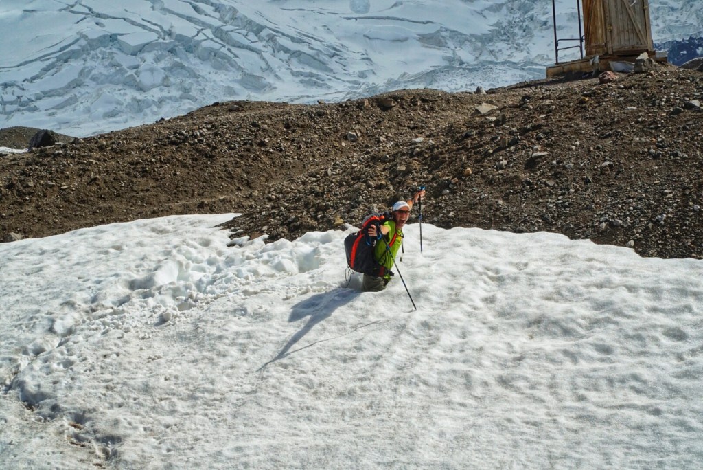 The dark grey “rock” below us is actually glacier covered in rock and soil.