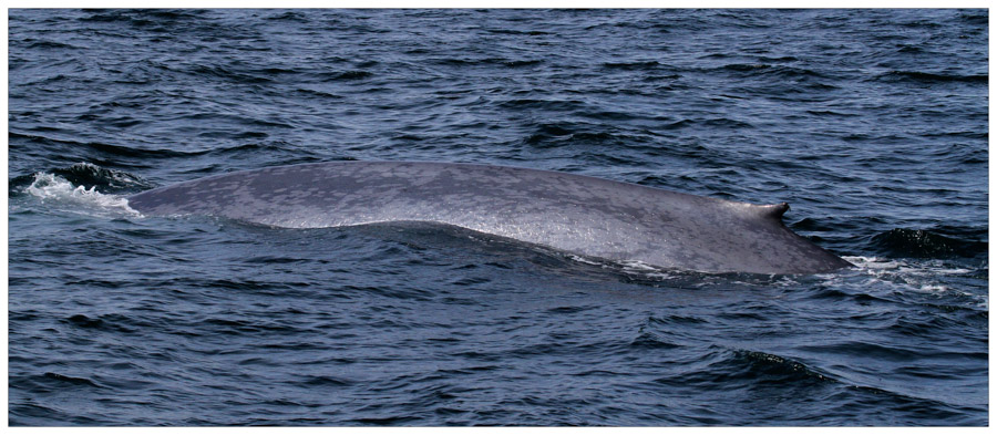 What we were seeing was actually not a humpback at all but rather a blue whale! While the blue whale might not put on the most exciting show, it is definitely an event to see one. It can measure up to 100 feet and is the largest animal to have everlived on Earth. Bigger than any dinosaur, it is the size of a ten-story building. Its heart alone is the size of a small car, and its tongue weighs as much as an elephant. A human being could swim through its largest blood vessels. Seeing such an enormous animal emerge from the depths, blow water thirty feet into the air and linger at the surface mere meters away from our boat was an incredible thrill that we will remember for a lifetime.