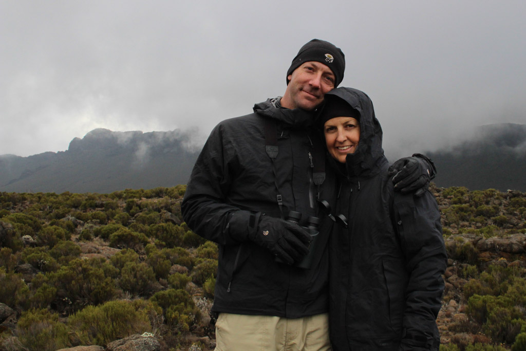 Eventually we ascended into the next ecozone, known as heather moorland. As the tall trees faded out of view, the trail yielded to a dense scrub of heather and protea bushes, and Kibo Peak and the Shira Plateau came into view.
