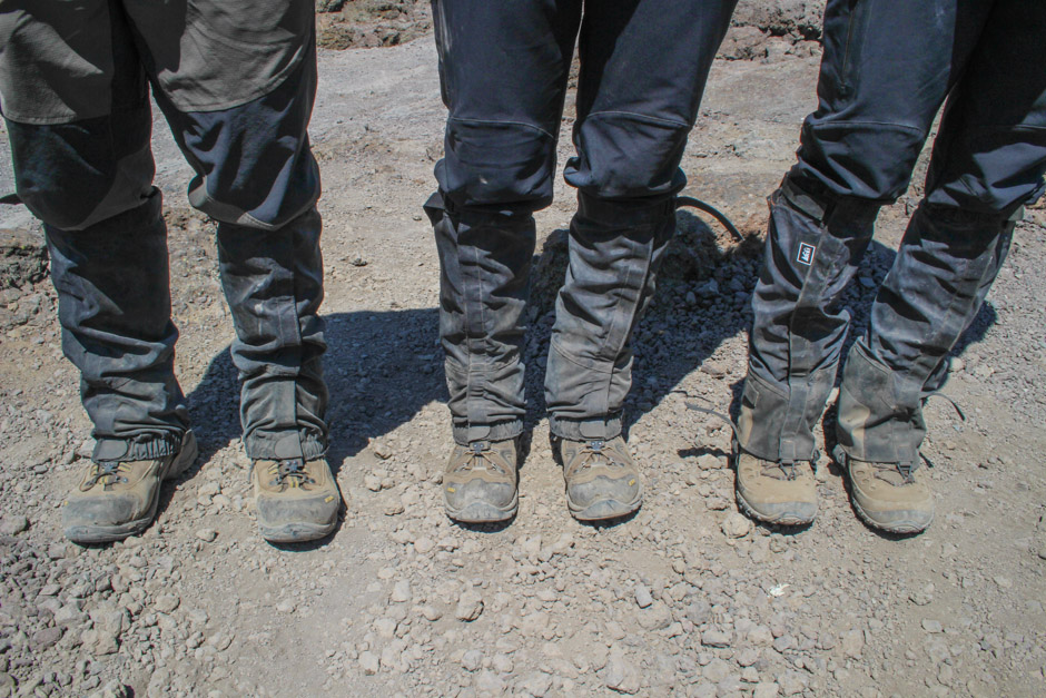 Gaiters: We had never really used these before climbing Kilimanjaro except for snowshoeing, but we were surprised at how much we enjoyed having them on the trek. Words can not describe how dusty the trails and campsites are. Gaiters go a long way to limiting the dust intake that finds its way everywhere–and we do mean everywhere (see above).