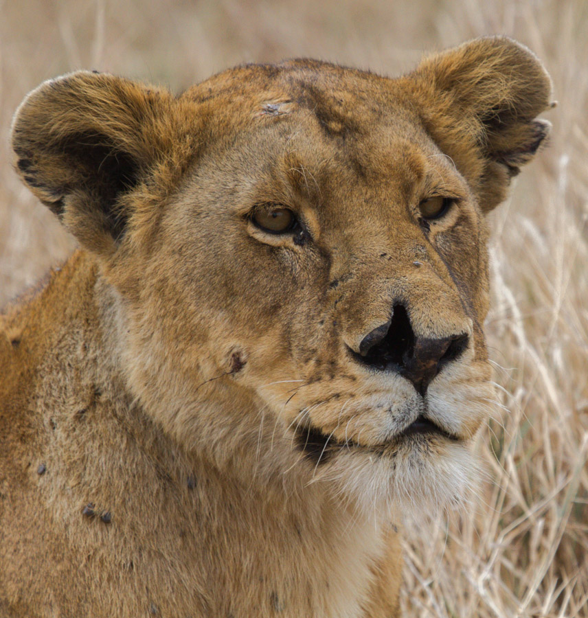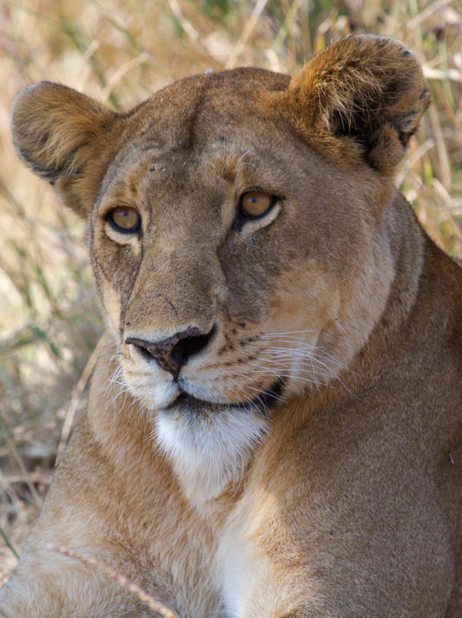 Later on, we encountered one of the same lionesses roaming on her own. It was easy for us to recognize her with such a distinguished battle wound on her nose. We wondered what animal might have caused such a scar—a true reminder that it’s not always easy being queen.