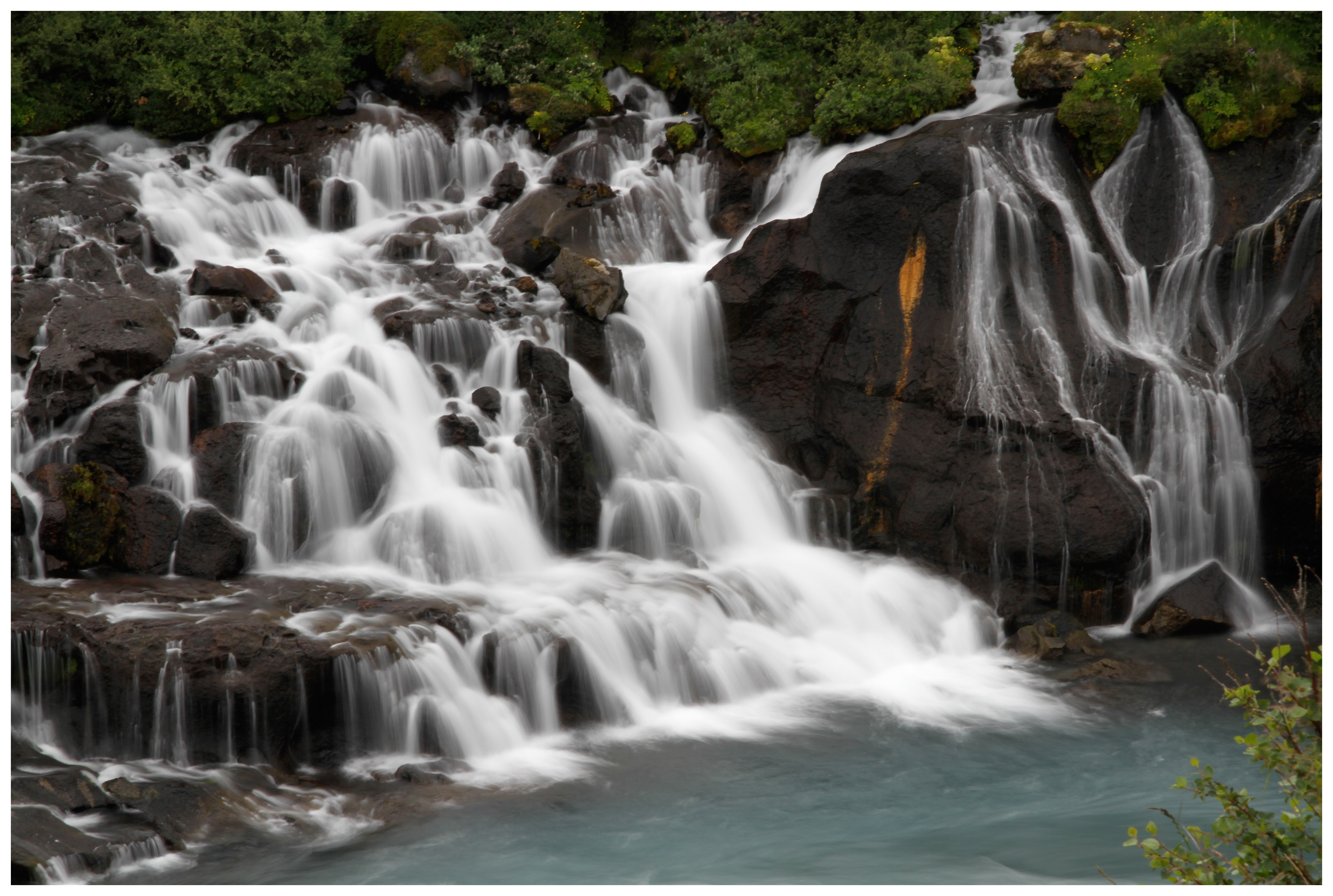 This small, beautiful waterfall is set in a natural amphitheater of columnar basalt, making it one of Iceland’s most picturesque chutes. Svartifoss is only accessible by hiking several kilometers on the Skaftafellsheidi trail in Vatnajökull National Park. Svartifoss makes a great destination for a picnic lunch. When we arrived around noon on a pleasant summer day, we found many families splashing around the stream below the falls and sunning themselves on the rocks. Be aware that this can make it difficult to get shots without people. We are not sure if this is always the case, but, when we were there in July, the combination of bright sunlight and low water volume did not allow for us to capture the motion blur we were hoping for even with our strongest neutral density filters.