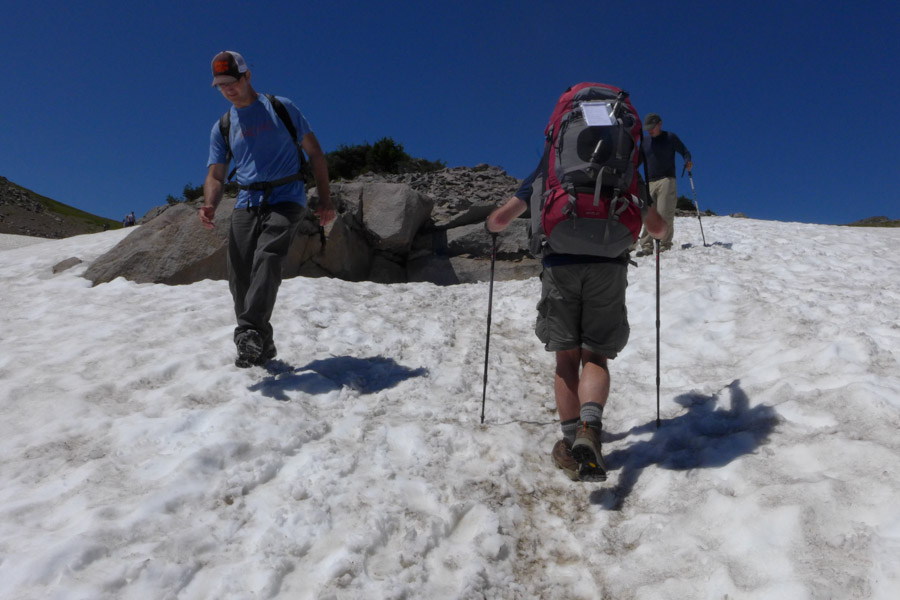 After lunch, the trail took us past Sunrise Camp, over several gentle passes and across a handful of small snowfields on the way to Frozen Lake.