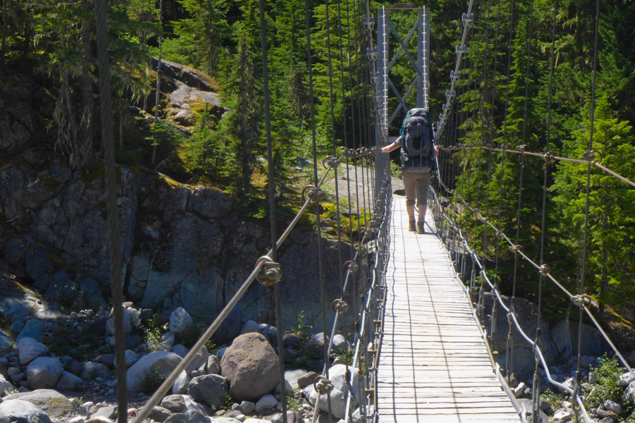 1.2 miles from Dick Creek, we came to the Carbon River Suspension Bridge, the first of two on our trip. Following the instructions posted at the entrance to the bridge, we took turns crossing the 205-foot long bridge one at a time and were careful not to cause any unnecessary movement.