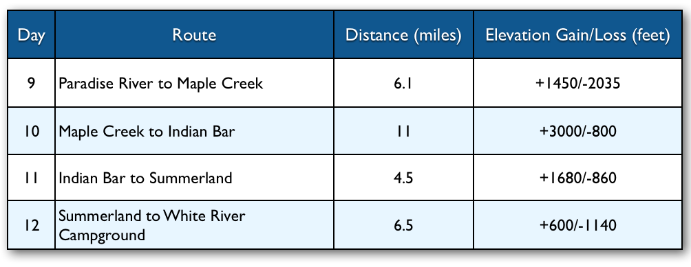 Day 9: Paradise River to Maple Creek, 6.1 miles