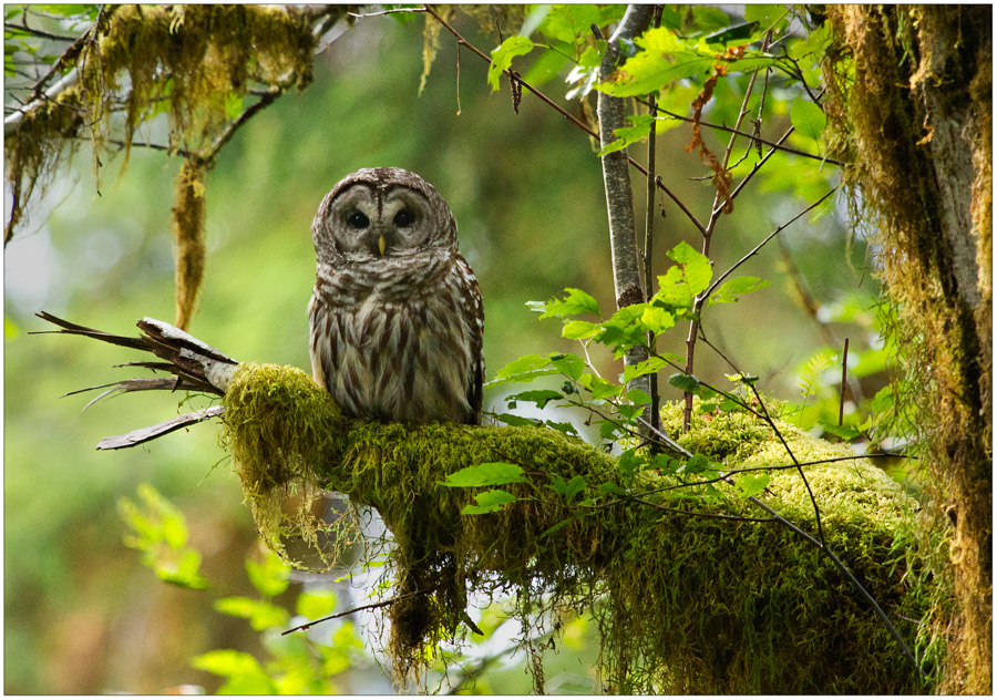 We were on our way back to camp when my mother spotted a large bird land in a tree. She wasn’t sure what it was at first, but we were delighted to discover it was none other than a beautiful barred owl. The magnificent creature perched on a branch for several minutes before flying off. I love owls and was incredulous to see one close enough to photograph in broad daylight. What a special treat!