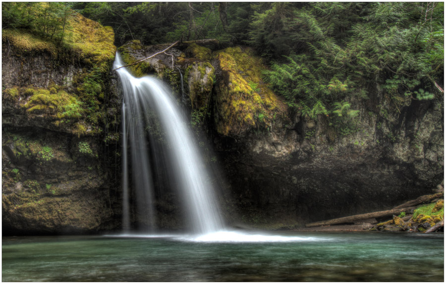 We continued our waterfall tour on the east side of Mount St. Helen’s with a short hike to Iron Creek Falls, which, in my humble opinion, was the most beautiful of all the chutes we visited. Getting to this vantage point required crossing the shallow river and some scrambling over downed trees, but the final photo was definitely worth the additional effort to get it.