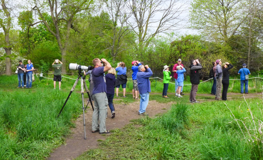 Sure enough. High up in the trees and deep in the bushes, hundreds of tiny warblers flitted about from branch to branch, singing their pretty songs and eliciting oohs and aahs from the admiring crowds. It was quite a scene.