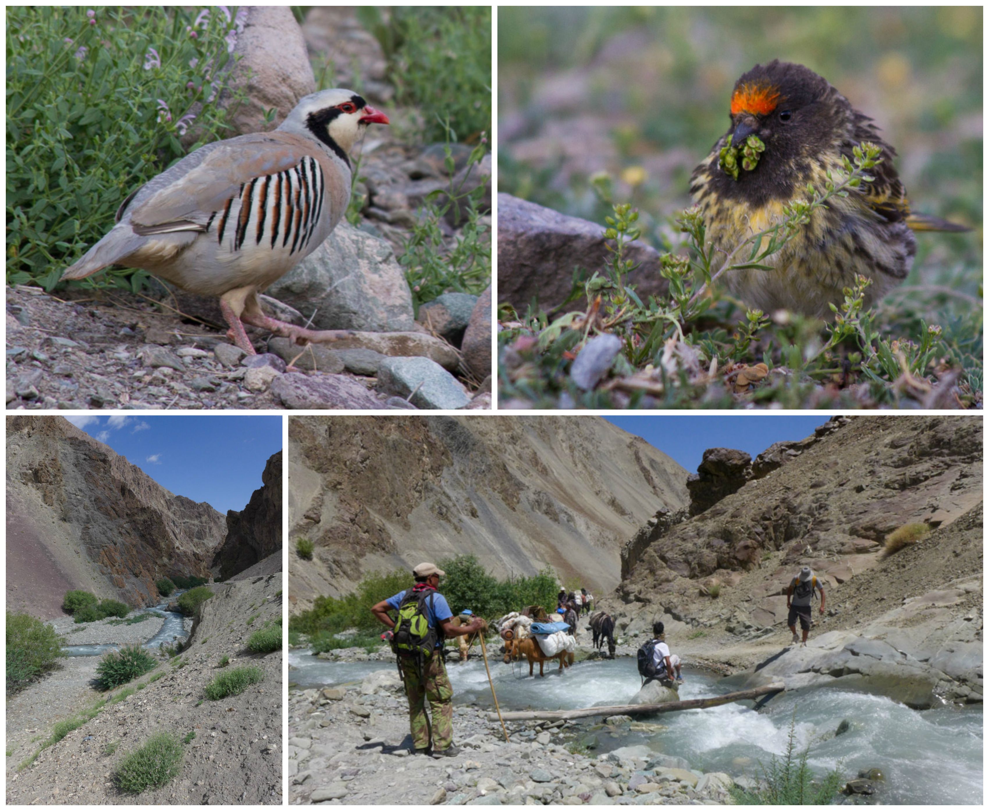 With only a short distance to go today, we lingered in camp this morning and admired the birds who ventured near our tents, including the striking Tibetan snowcock and a fire-fronted serin gathering its breakfast. It was a short 2-hour stroll down the increasingly narrow river canyon to the end of our trek. Along the way, we passed hordes of first-day trekkers (along with their crews and donkeys) beginning the Markha Valley trek on a scorching hot day. Many had looks of exhaustion and exasperation, and we imagined most were probably wondering what they had gotten themselves into. Seeing this, we were all extremely grateful to have altered our route, allowing us the opportunity to trek in cooler climes and on far less crowded trails on the east side of the Stok Range. We crossed the rushing Rumbak River several times before hitting the official entrance to the park and the road out to Zingchan where we arranged for a car to drive us back to Leh.