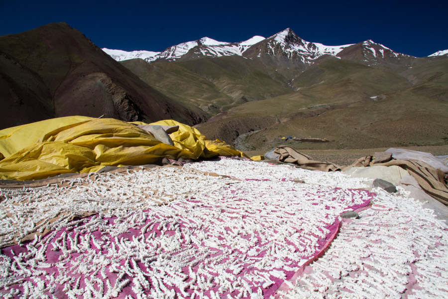 After bidding our new friends farewell, we set off on the hike up and over Matho La (4930 meters/16,174 feet). The views of the Matho Kangri range all covered in snow were superb, and, when we finally reached the top of the pass, we were greeted by a welcoming party of a few grazing dzo. From there, it was a short and steep stroll down into the next valley to a riverside camp off the beaten path where we treated ourselves to an ever-so-brief dip of the feet in the icy-cold Labar River.