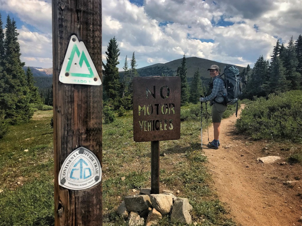 After crossing a rough Jeep road, we spot our very first Continental Divide Trail blaze, indicating that we are now sharing the trail with thru-hikers who are marching all the way from New Mexico to Canada. We are not sure where they should be at this point in their long journey, and we wonder if we will see many of them over these next 300+ miles that our two trails share together.