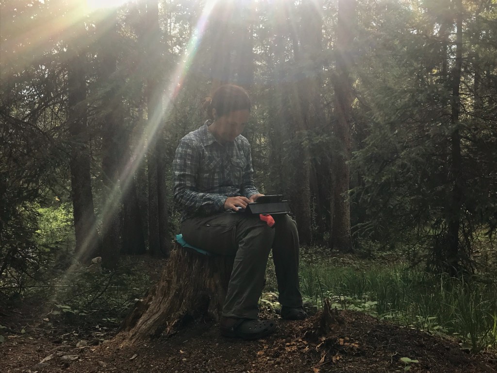 We pass another camp at our third mile just as Juli and Eden are leaving, so our group grows to five. Within minutes, we get distracted by our first bird sighting of the day (a male American Three-toed Woodpecker with a cool yellow crown), and we are back to hiking alone.