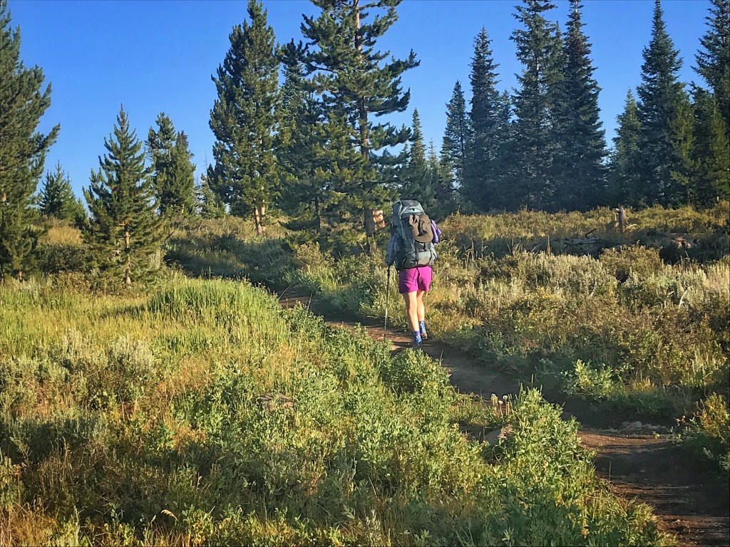 We snap a few quick pics and throw our packs down in the grass with a view toward the ever-darkening clouds. We eat a hasty lunch and begrudgingly hoist our packs on again as we hear the distant rumble of thunder. Though beautiful, this is precisely where we don’t want to be if this storm gets real, so down we go.