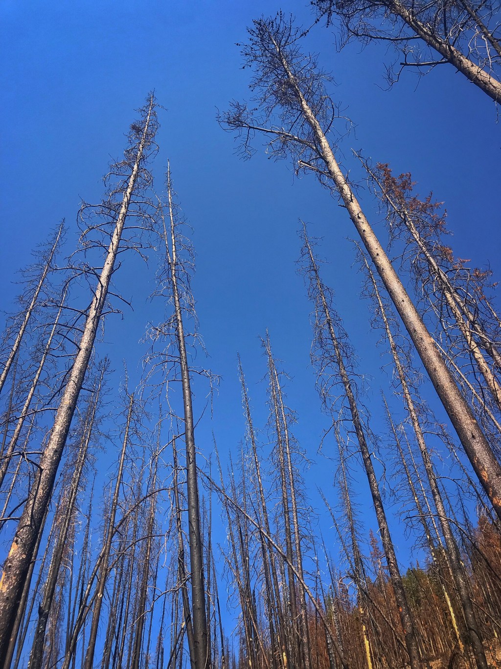 We continue to hike higher into the forest and through a more recent burn area. We know that ultimately a burn is good for the health of a forest, but this area still looks quite devastated.