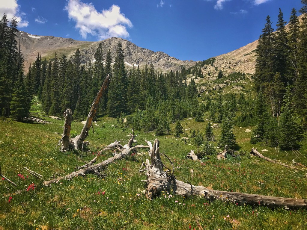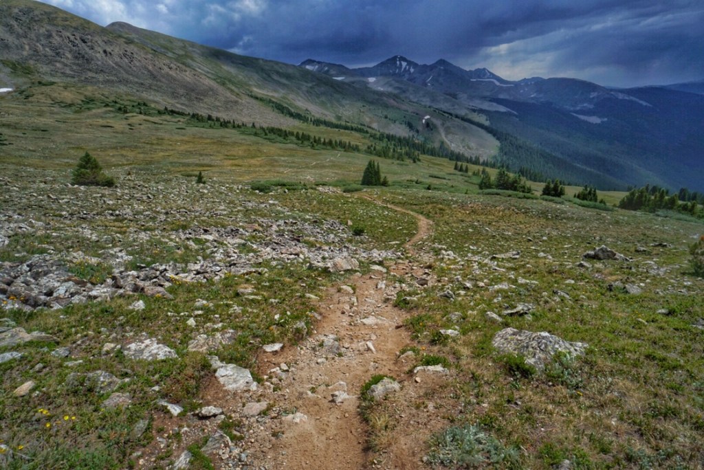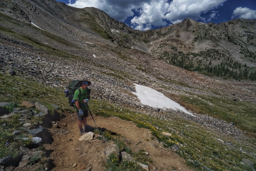 In the back of our minds, too, is the very real concern of getting caught above treelike by an afternoon thunderstorm, which is common at this time of year in Colorado. We’ve experienced it twice already, but today we know we’ll be exposed at a higher elevation for much longer, so the incentive to keep pushing is there.