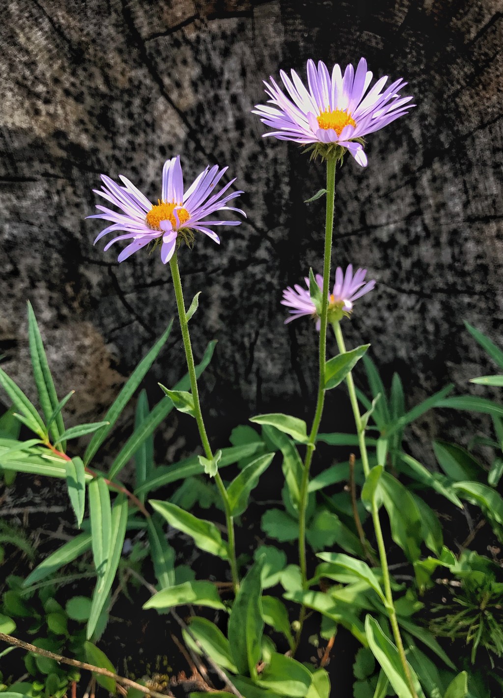 We climb again through the forest and emerge on an old logging road. We find a couple of decent rocks to sit on for lunch. I find the perfect lounge chair rock and am grateful for a way to rest my back!