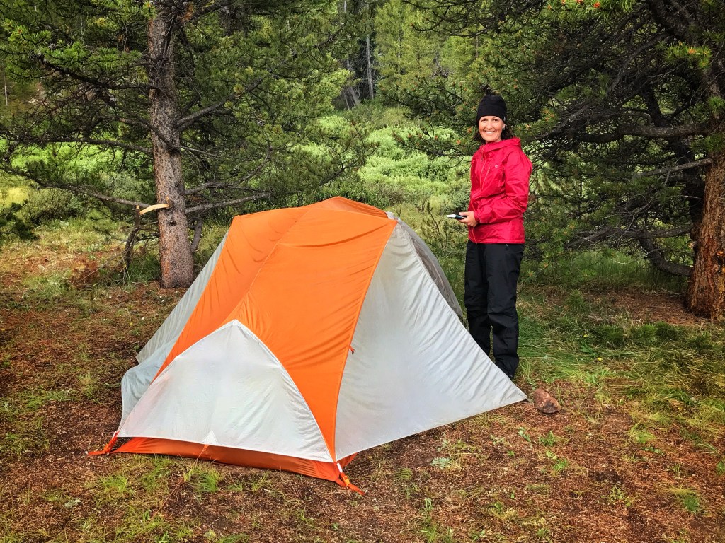 With the clouds looking darker, we quickly set up the tent and get the rainfly on just before the first drops hit. We dive inside and wait out the rain for about 30 minutes before emerging to take care of our usual camp chores.