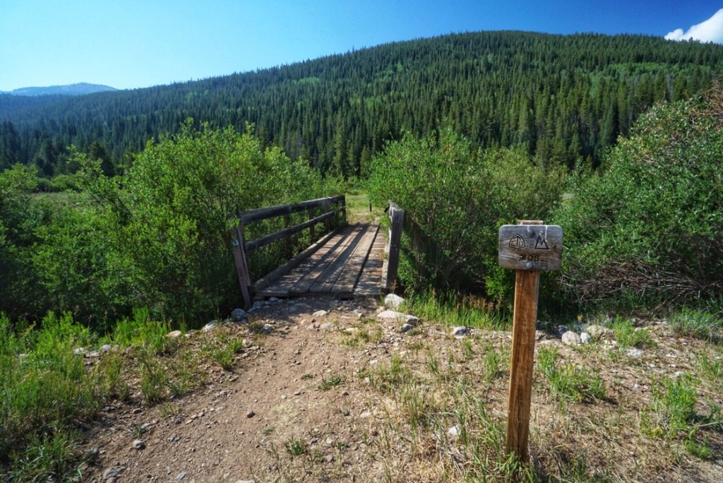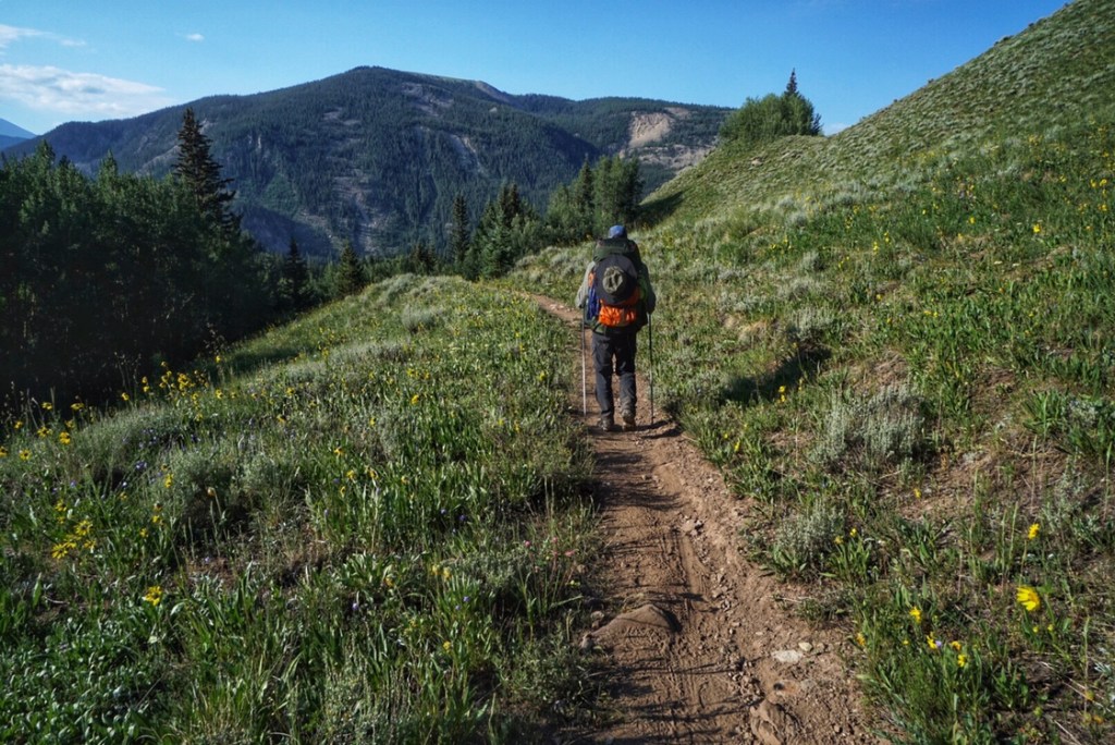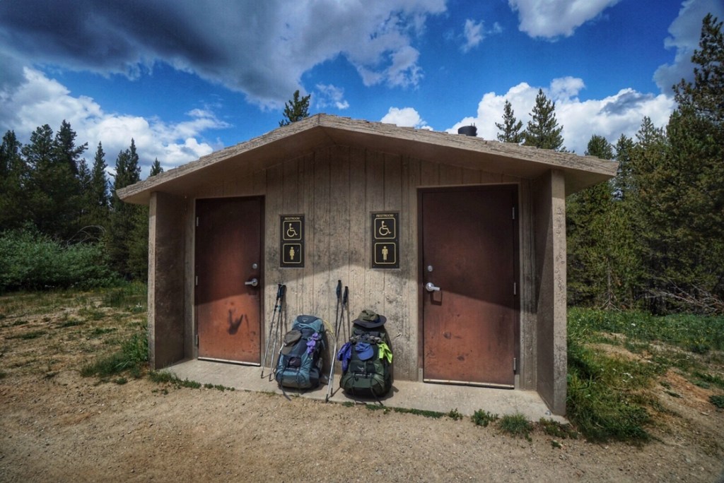 We pass a few other dayhikers and CT hikers as we make our way down to Tennessee Pass and the end of Segment 8. Here we encounter a rare find in the wilderness: a his and her restroom–drop toilet–but still a luxury!