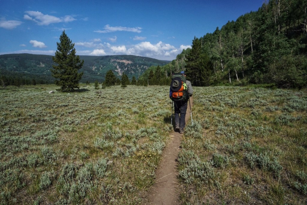 Today proved to be a bit of a departure from the topographical pattern set so far on the CT. Rather than climbing above treeline and over high passes to soaring panoramic views of the surrounding mountain ranges, today’s trail was more about the journey between. After breaking camp we set off downhill, paralleling Cataract Creek to the bottom of the hill, descending steeply at times. This is not our favorite way to start a hike, but the sun is shining, and we are in a good mood. We note other campsites along the way but are glad we chose the one we did last night.