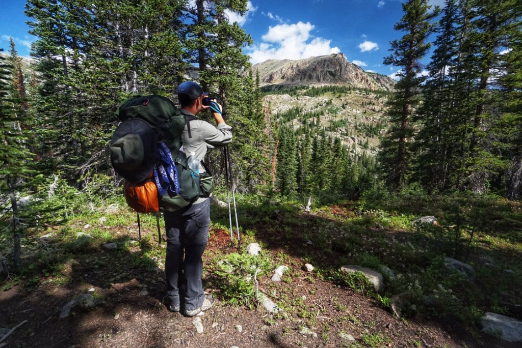 After a few more miles, we emerge from the forest into a beautiful meadow called Longs Gulch. There is a sign and a trail register indicating that we have arrived in the Holy Cross Wilderness. We are supposed to fill out a permit slip to carry with us, but the box is stuffed full of used forms. There are no blank ones left, so Matt takes a photo of the chaotic interior of the permit box just in case we run into someone from the forest service. Chances are it won’t be an issue.