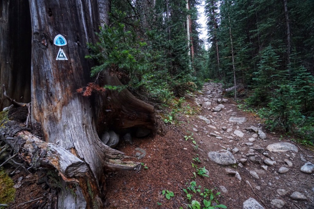 On this side of the lake, the trail is more shaded as it passes through pine forest. We welcome the break from the direct sunlight. In a few miles we pass the junction to the Collegiate East and are now officially on the Collegiate West trail.
