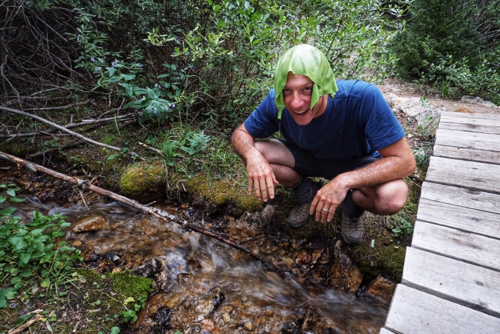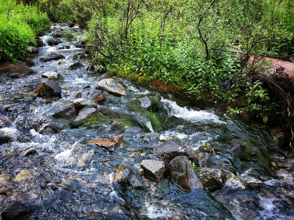 We set about to do our camp chores and head to the beautiful little stream in the meadow behind us to filter some water and rinse off. It’s getting late in the day, so the water feels especially refreshing on our tired feet.