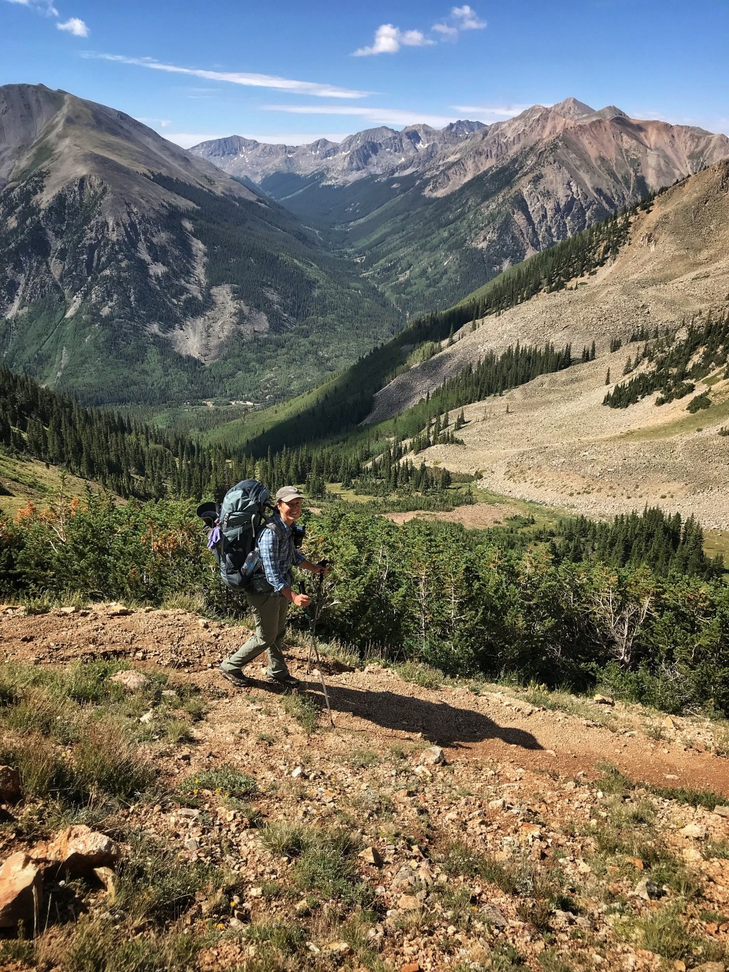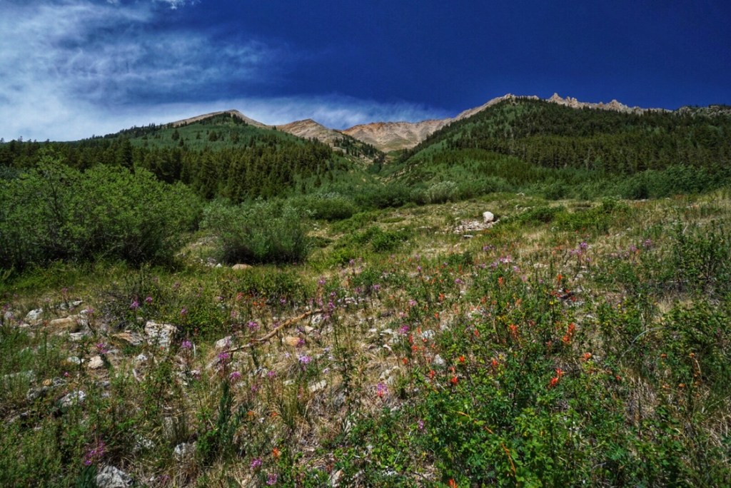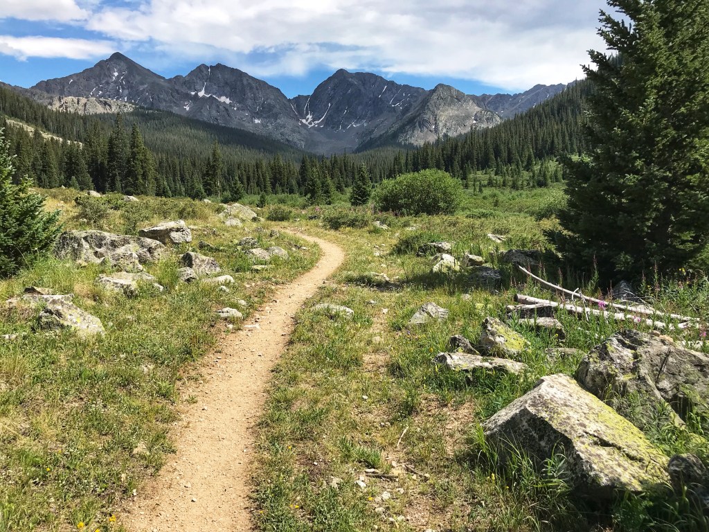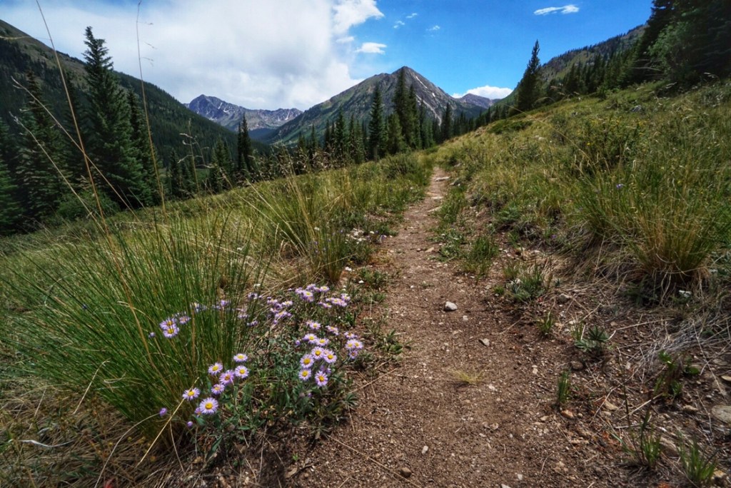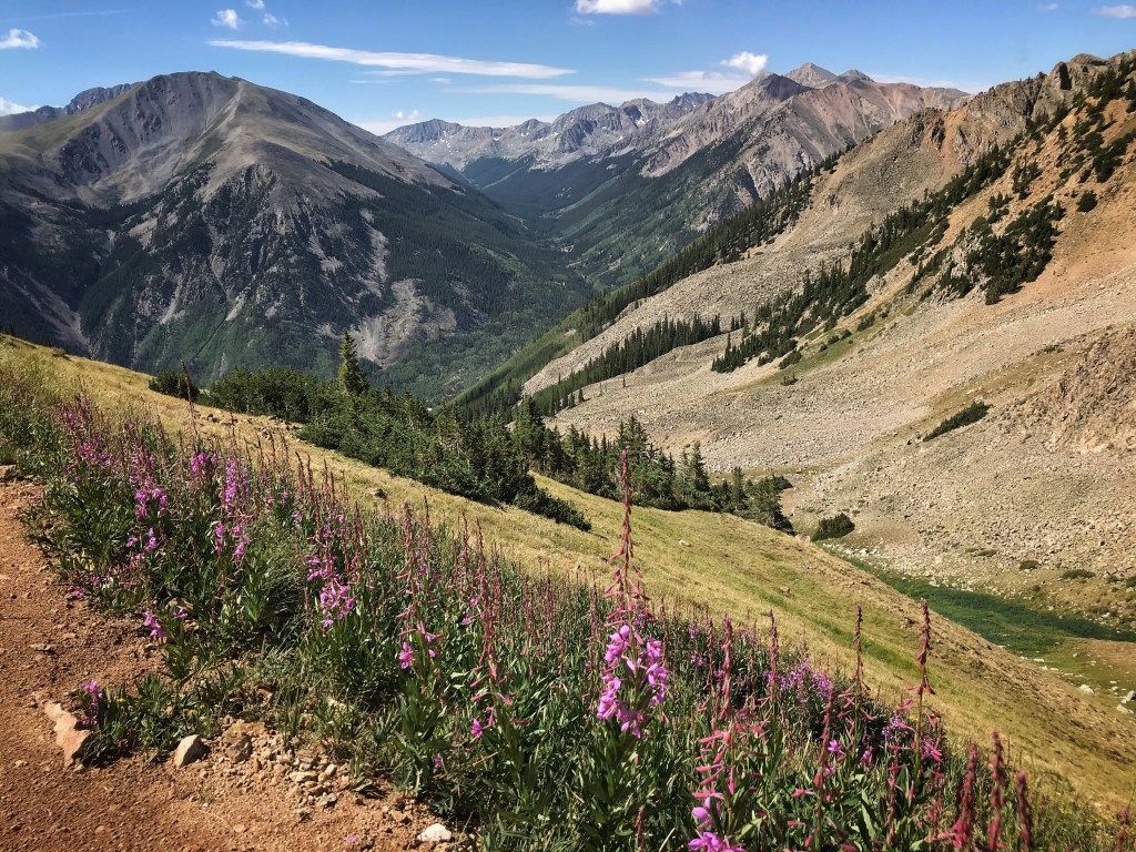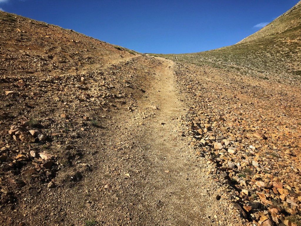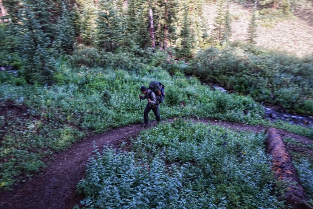 Our tent site has the pleasant sound of a creek rushing nearby, and, with the long day of hiking yesterday and the crazy thunderstorm, we both have the best night of sleep so far on the trail. That’s probably a blessing because we have a challenging day in store starting with a big ascent over Hope Pass followed by a long descent and then a final climb to Lake Ann. It’s our first full day in the Collegiates, and we are anxious to see if they are any more challenging than what we have experienced so far.