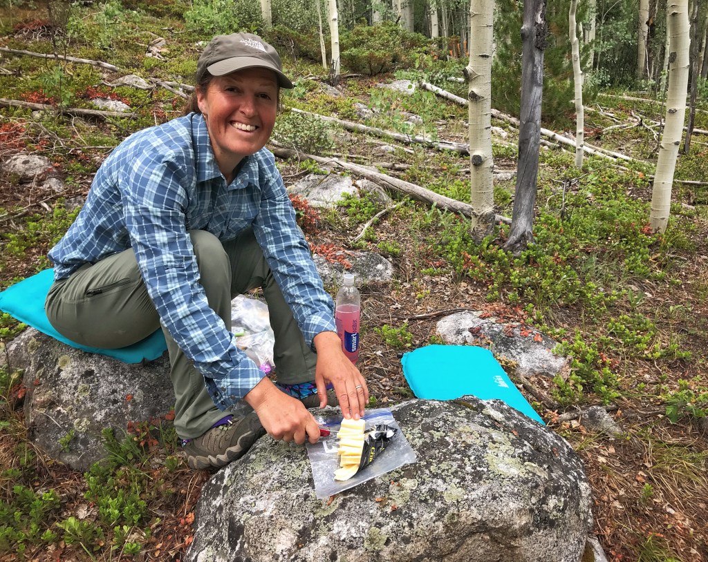From the pass, it is a pretty steep 2400-foot plunge over 2.5 miles down to the end of the segment at the Sheep Gulch trailhead. Again, we break up the work by stopping often for photos of the magnificent scenes we pass. I am not a huge fan of steep downhills, but this one isn’t too bad. By the time it is done, we are ready to find a good spot for lunch.