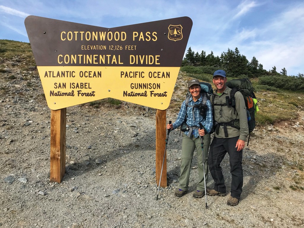 By the time we get to Cottonwood Pass, everyone else we know on the trail converges on the scene. Steve and Emma take our photo at the cool sign that shows we are standing on the Continental Divide and then head on their way.