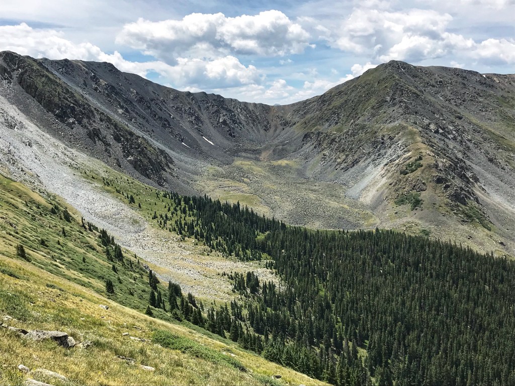 We have our eyes set on Sanford Saddle for our lunch spot, but the wind really picks up once we get close to the top. Instead, we run into a nice couple from Western North Carolina, Tricia and Austin, who are backpacking the Collegiate Loop, which is both the east and the west sides put together. Matt asks about the east side, since we are only doing the west. They are both in agreement that we definitely chose correctly to do the west side. They say that the east is pleasant, but it is a lot more accessible so there are plenty of people and hardly any views above treeline. Hiking there reminds them of the AT. In yet another small world moment, these two are about to move from Asheville to Burnsville, very close to where my parents live in North Carolina. We wish them the best on the rest of their trip and suggest we get together the next time we are in NC to chat more about our Colorado experiences.