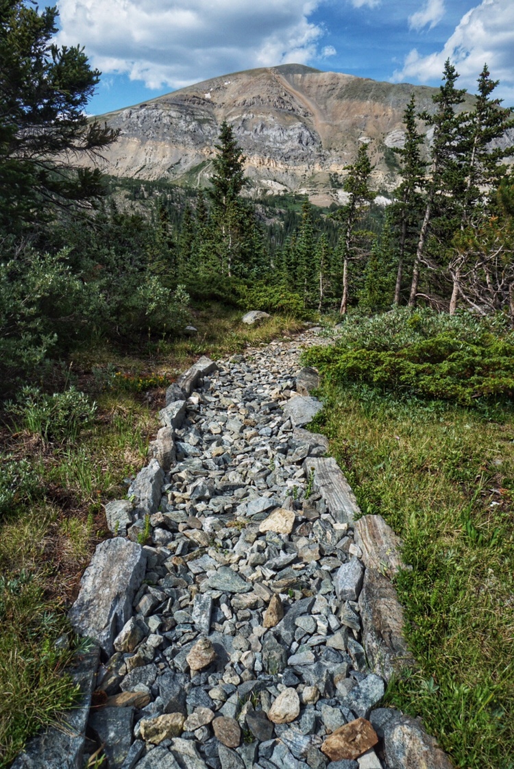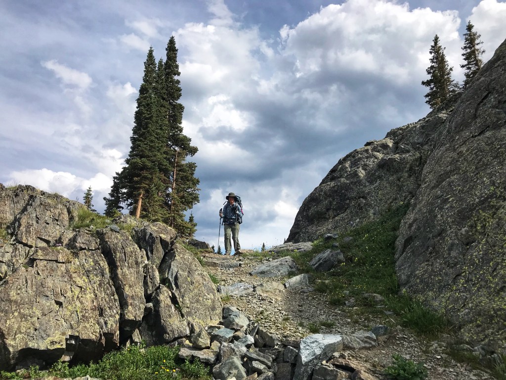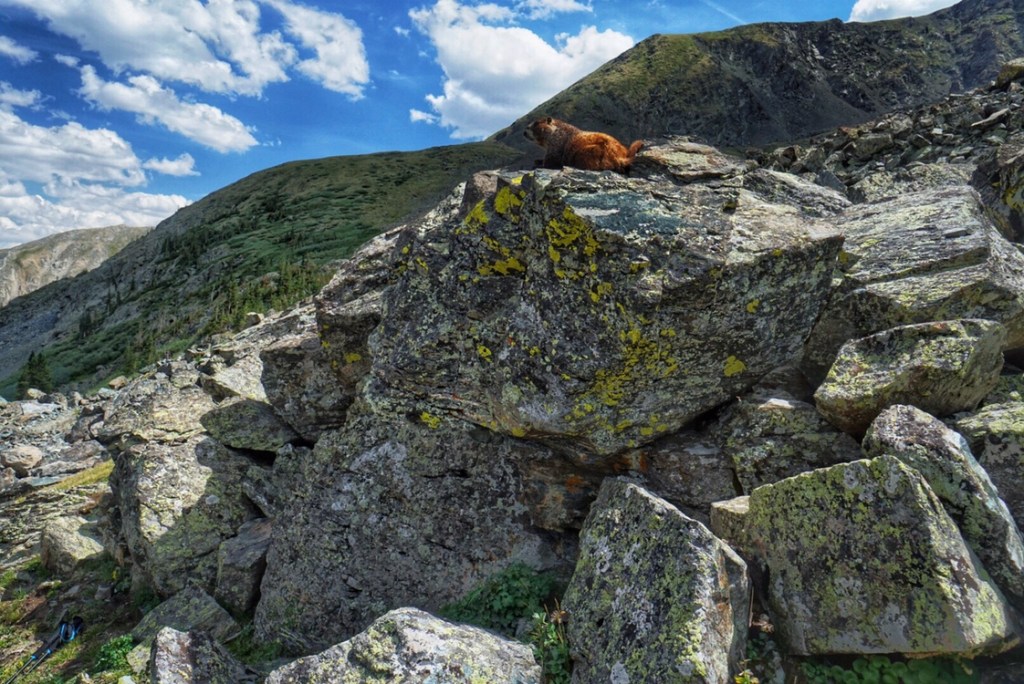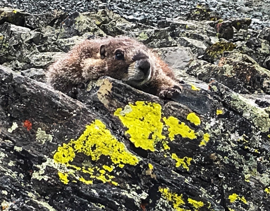 We also pass large boulder fields that cover the trail, and we take our time here, too. This is not only because the footing is a little tricky but also because this is the land of marmots, and we love marmots!