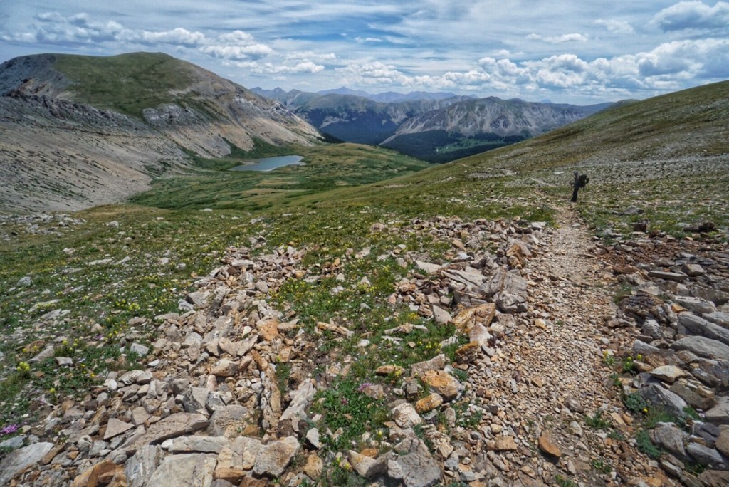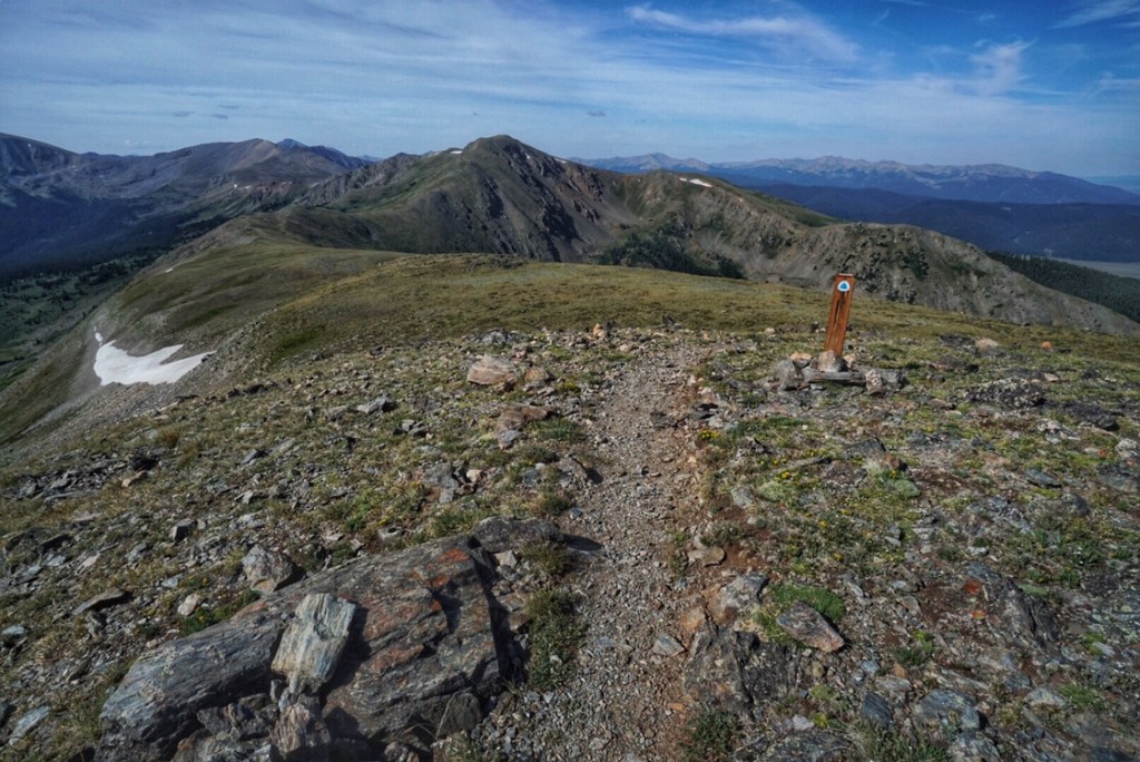 This is classic Colorado in our minds, but it reminds us off the amazing ridge walk we did between the Iris Burn Hut and the Luxmore Hut on the Kepler Track in New Zealand. It’s not every day that you get to walk on a trail that looks like this, and we are relishing every second of it. We contour the mountains and head up to a ridge where Juli and Eden are having a break.