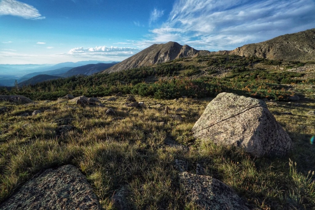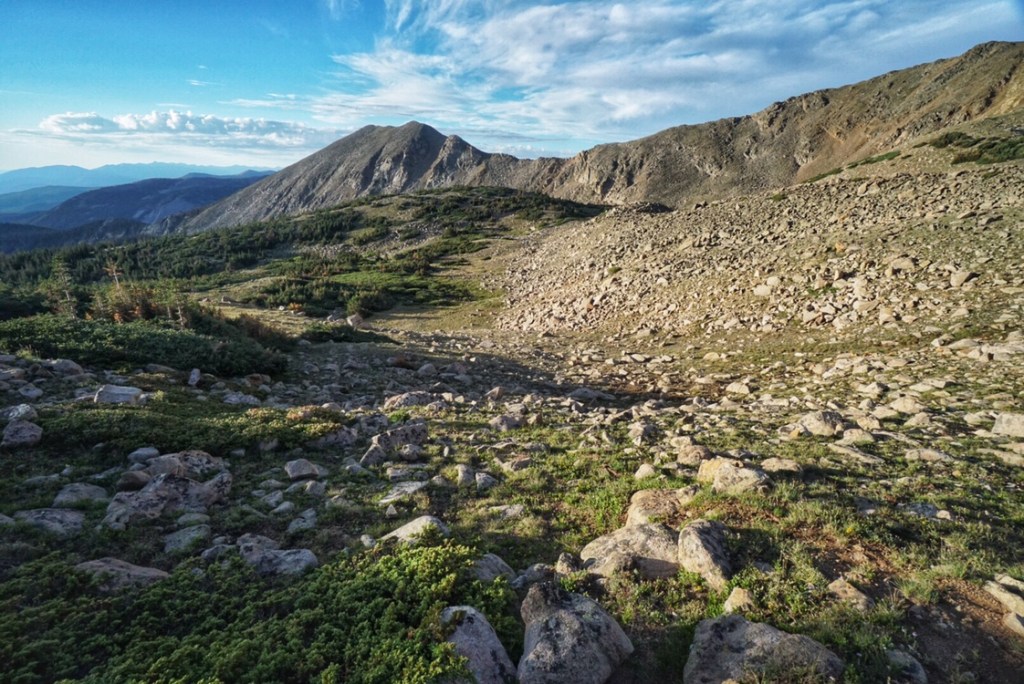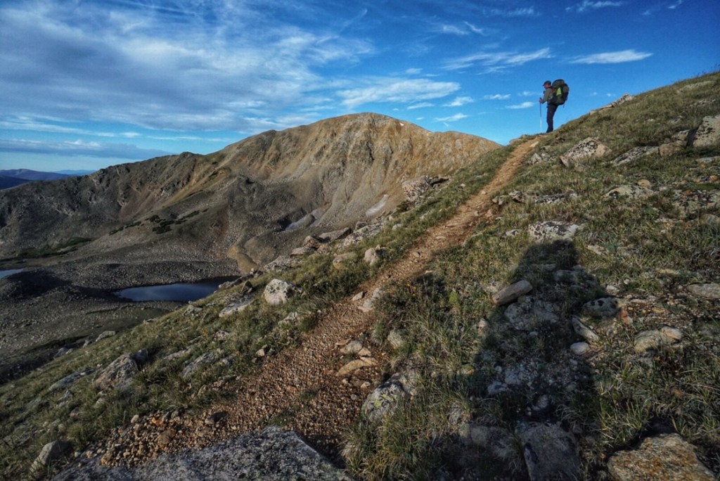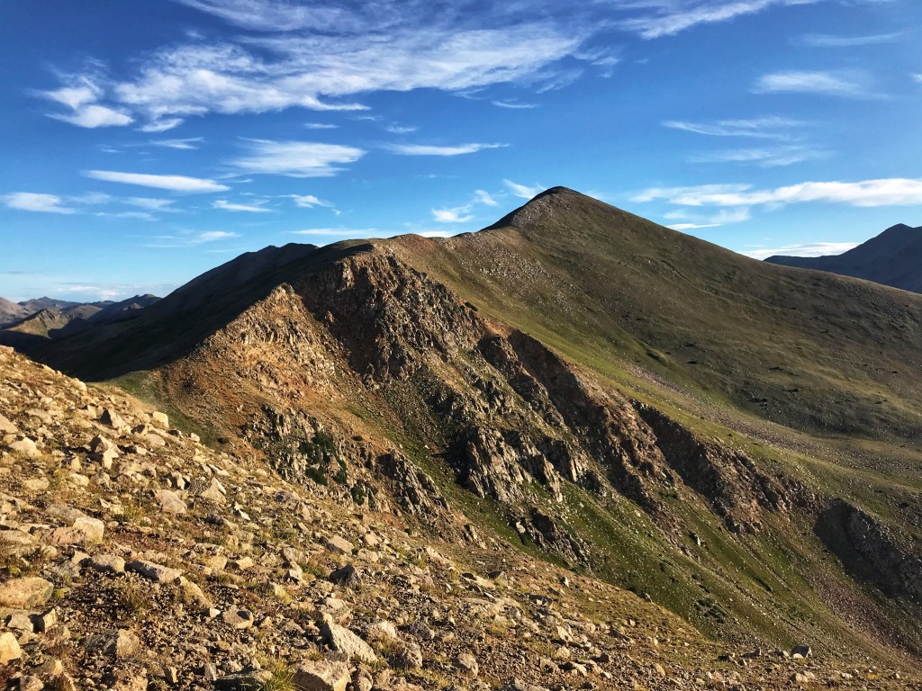 Our mood is light and optimistic as we reach the high point on the ridge, knowing we have a fairly easy walk down to Monarch Pass. Still, we have miles to cover and a goal of eating lunch in Salida and avoiding another PB&J tortilla. We add a few rocks to the cairn marking the pass for good luck and move on.