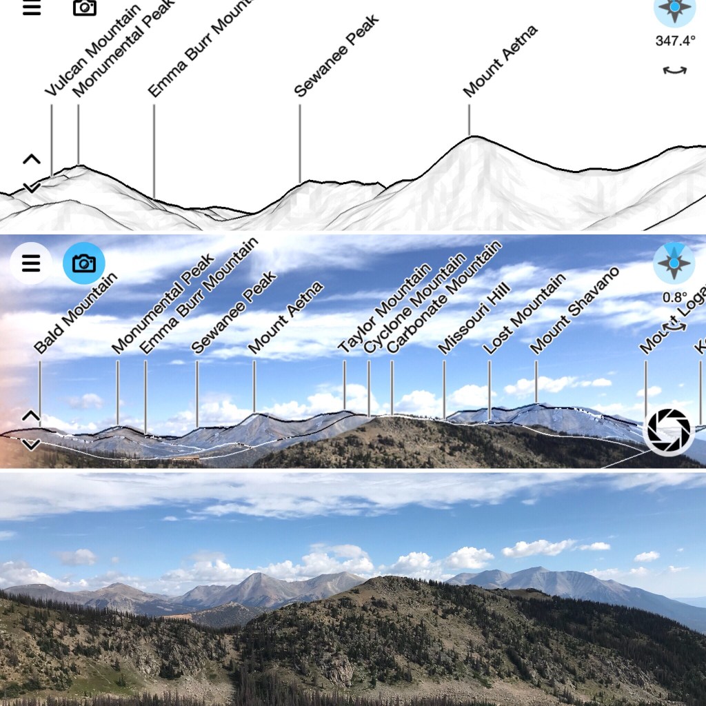 As the trail rises above tree line, it emerges onto a ridge following the Continental Divide which affords spectacular views of Mount Aetna, Mount Ouray and Mount Chipeta. I downloaded a new app (to me) called PeakFinder that tells us the names of the mountains we are looking at. It’s so cool to finally be able to identify these beautiful peaks!