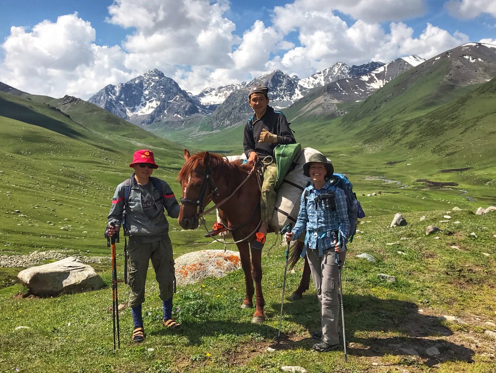 It’s a bright sunny morning, and we’re eager to hit the trail. We are ready to go, but Adis and Urmat still have to pack up all the tents and gear and load up the horse, whom we’ve affectionately named Bob. So we grab our packs and stroll slowly up the trail in search of new birds.