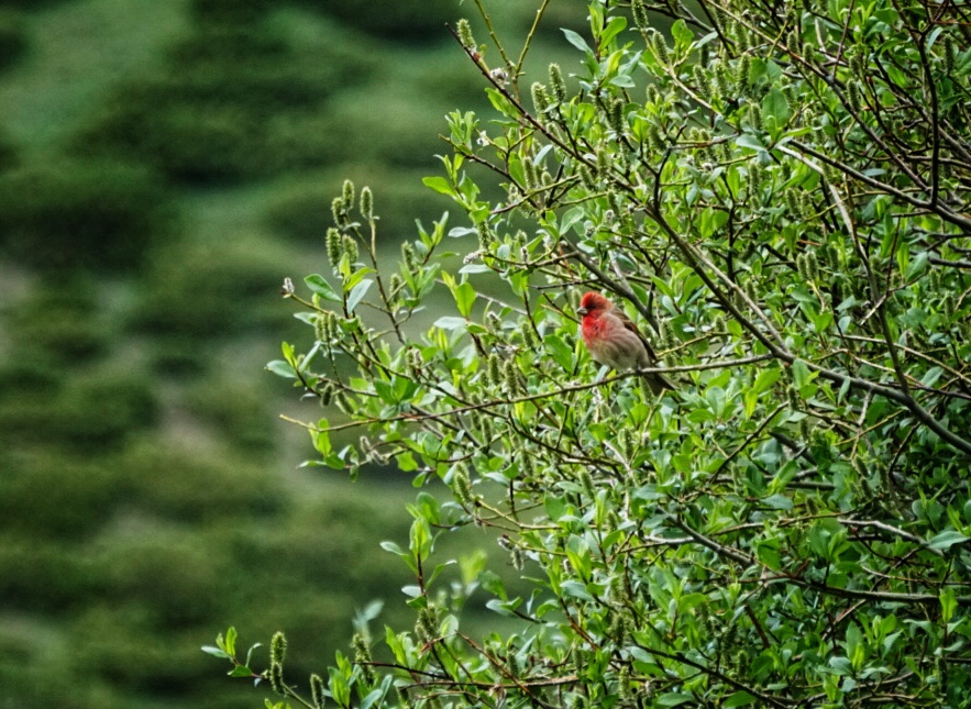 We luck out and spot a pair of White-winged Grosbeaks munching on berries in the thick bushes. We do our best to capture a shot with the little telephoto lens we are carrying, but it’s not nearly as good as the telephoto lens we have back home for bird photography. Still, it’s exciting to see a new species.
