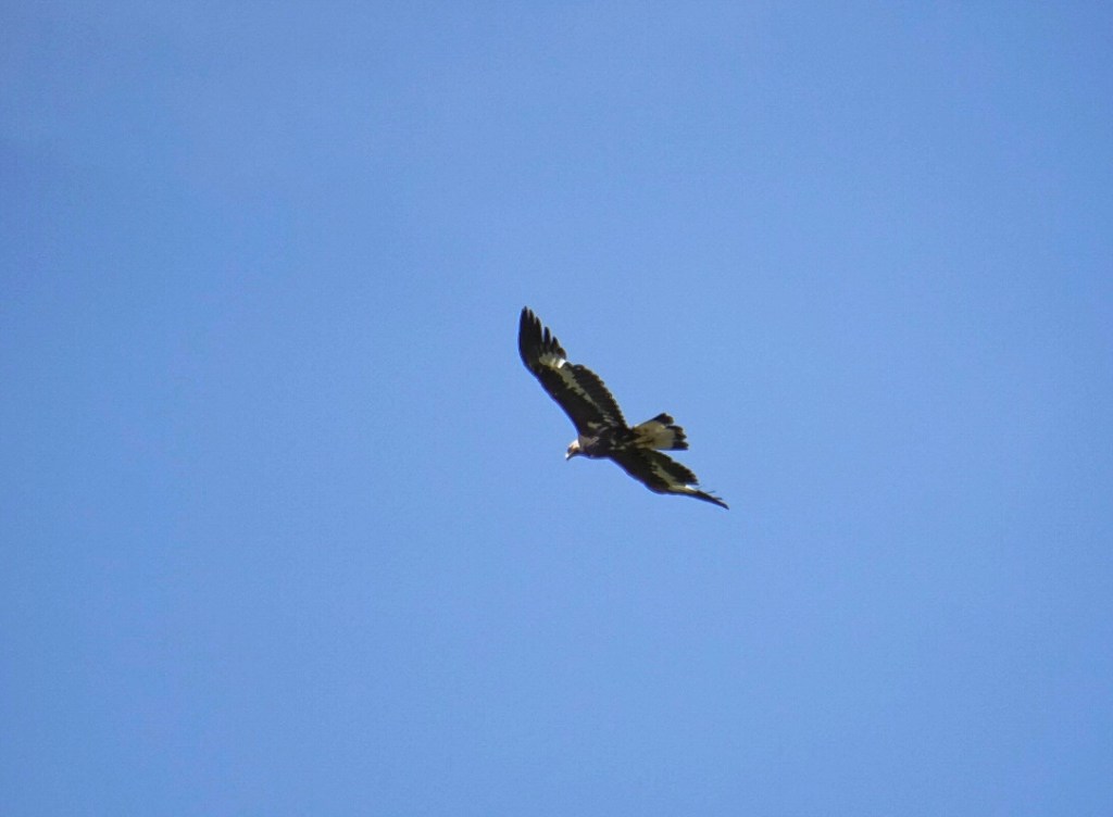As we are relaxing we first hear, then see our first marmot of the trip. He is alert and whistling warning calls from his perch across the river. Soon we see why. There is a golden eagle soaring and hunting and occasionally swooping quite low. At one point he even lands though we cannot see if he has caught anything.