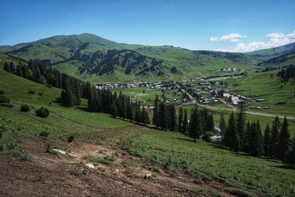 When we finally reach the top, we have a bird’s eye view of the village below. James points out the wooden platform and large tractor tires across the river. They are there for the town’s summer festival at the end of August, where they play kok boru the very popular Kyrgyz game played on horseback where two teams compete against each other to score goals with a dead goat body. The platform serves as the stage, while the tires are the goals. To these vegetarian animal-lovers, it sounds pretty gruesome, but James focuses on the great skill required by the players to play this rough, rugby-like game on horseback.