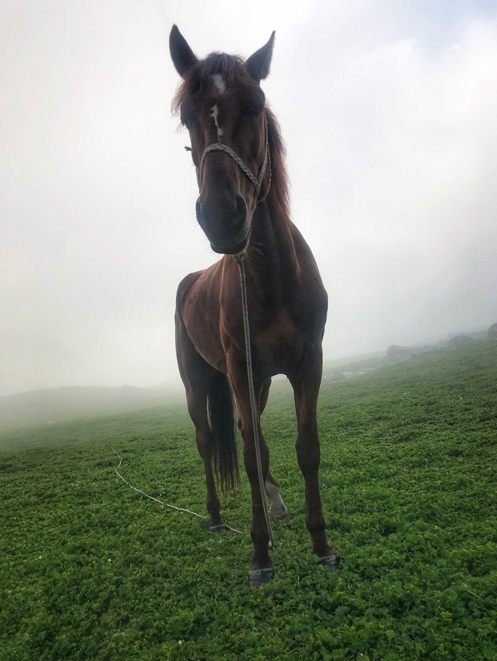 Urmat pauses a few minutes on the other side to give Bob a bit of a rest before coming back to get me, which only gives me more time to get anxious about the crossing. Soon enough, he is galloping toward me, and it is my turn. I climb up onto Bob’s back and take my spot in the back as Urmat hops up. And, just like that, we are off!