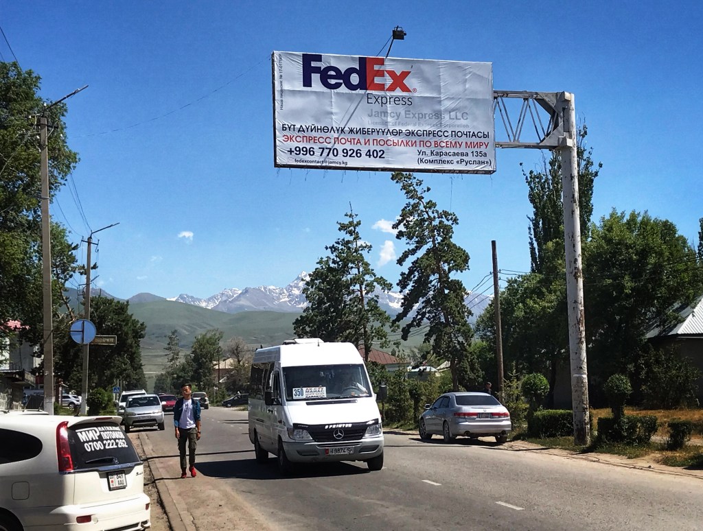 We see a gas station, a supermarket, an old Russian Orthodox Church and even a traffic light of all things, though Farkhat says people here are terrible drivers. Oddly we see banners strung across the road advertising FedEx and YouTube.