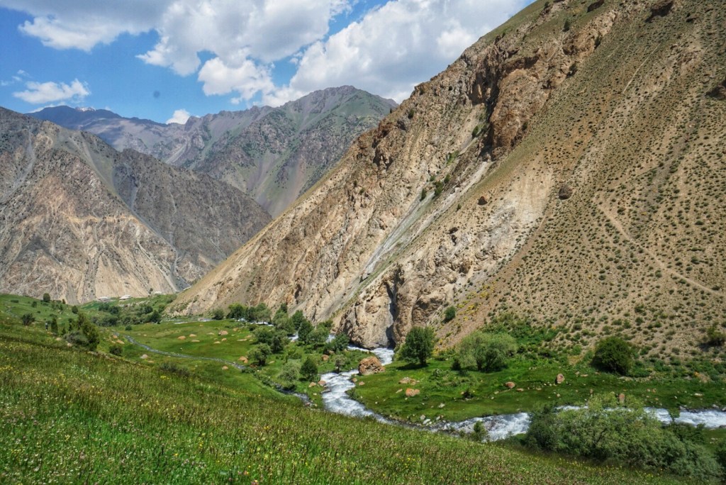 After breakfast, we all pack up and say our goodbyes and begin to head off down the valley. Today is meant to be a short, easy downhill walk to a village where we will stay in a guesthouse. After yesterday’s big day up to Sary Mogul Pass followed by a monster descent, nobody’s complaining about a recovery day.
