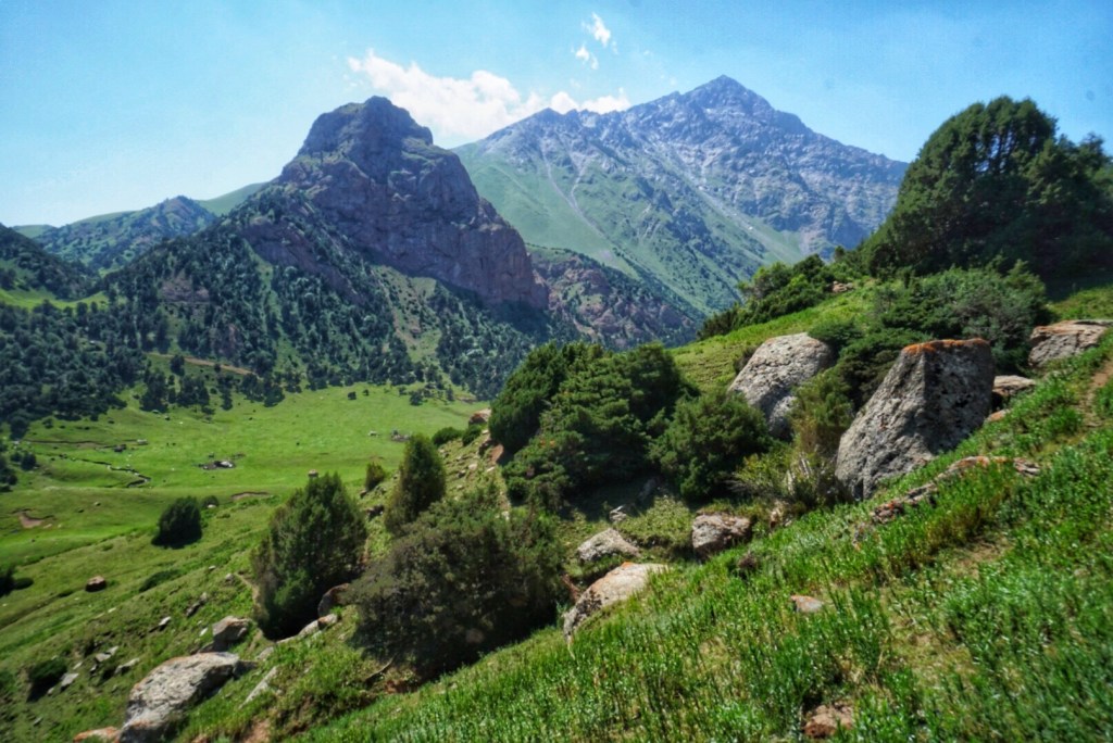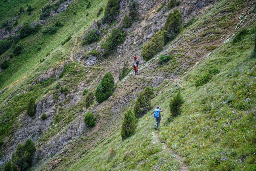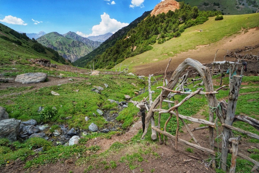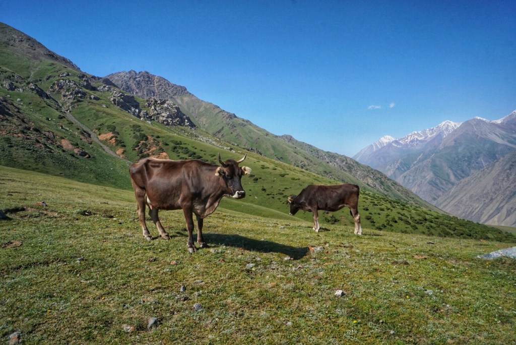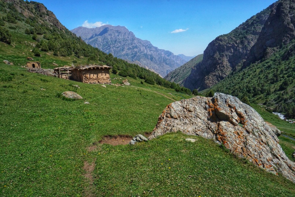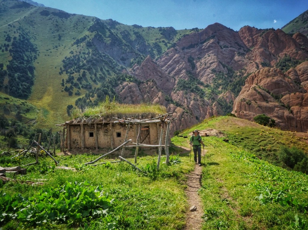 We catch up to everyone sitting on a ridge overlooking the small village of Kojokelen. We bushwhack our way down the hillside to the small guesthouse where we will spend the night tonight. We are greeted warmly by the pater familias who has a kind, weathered face. He wears a kalpak, the traditional Kyrgyz felt hat worn by the head of the household, and shows us to our rooms.