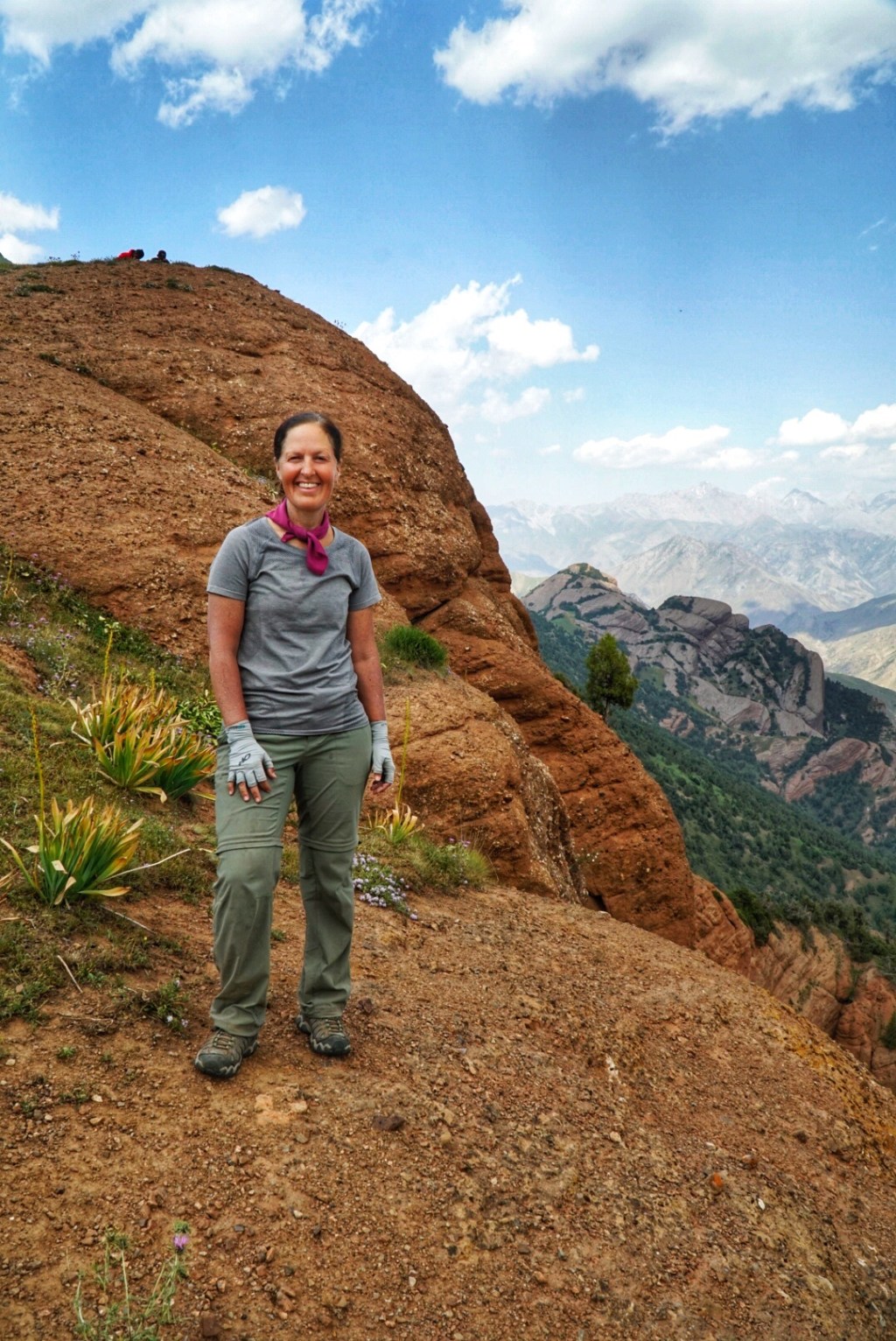 It’s not too far to Sari-Bel Pass (10,350 feet) from the camp, and, when we get there, Timu tells us to take our packs off and walk up to a viewpoint. Down below us, we are surprised to see impressive red rock formations stretching out for miles ahead of us. The layers of pillowy rocks look like they could have been plucked from the American Southwest. It’s such an unexpected view, and we all have fun taking photos of the scene from this wonderful vantage point.