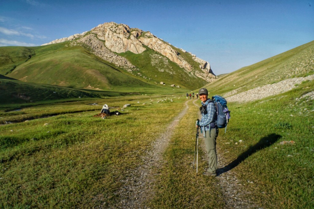Today we will complete the 6-day loop known as the Heights of Alay Trek, and the day starts off with an unusual challenge. The blankets at this yurt camp are exceptionally heavy, and just getting out of bed is hard work. We feel like we are removing the lead vest that protects your chest when you get X-rays at the dentist office. Maybe the idea of those weighted blankets that are so popular now came to us from Kyrgyzstan!