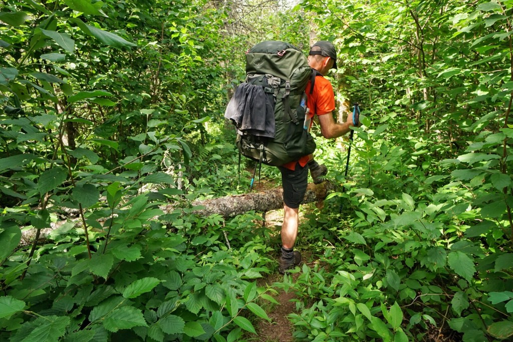 The last half mile to our camp at Sucker River gets fairly gnarly with downed trees that we have to negotiate with our packs on and at our least energetic moment of the day. It reminds us of the time we tackled the Northern Loop off the Wonderland Trail around Mount Rainier. The area had suffered a blowdown in the spring, and trail crews had not yet had a chance to get back there and clear the trails. This section could benefit from some TLC for sure.
