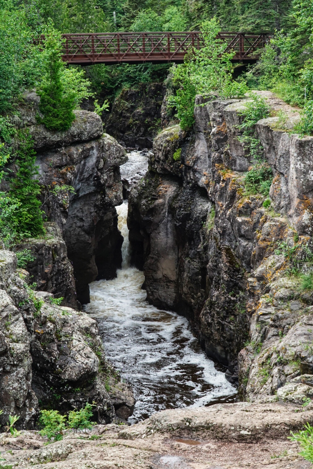 Later afternoon we decided to play tourist and head up to Temperance River State Park to hike up and down the river gorge, which was quite striking with its deep canyon walls and impressive waterfalls. We found a delightful state forest campground near Finland to stay at for the evening.