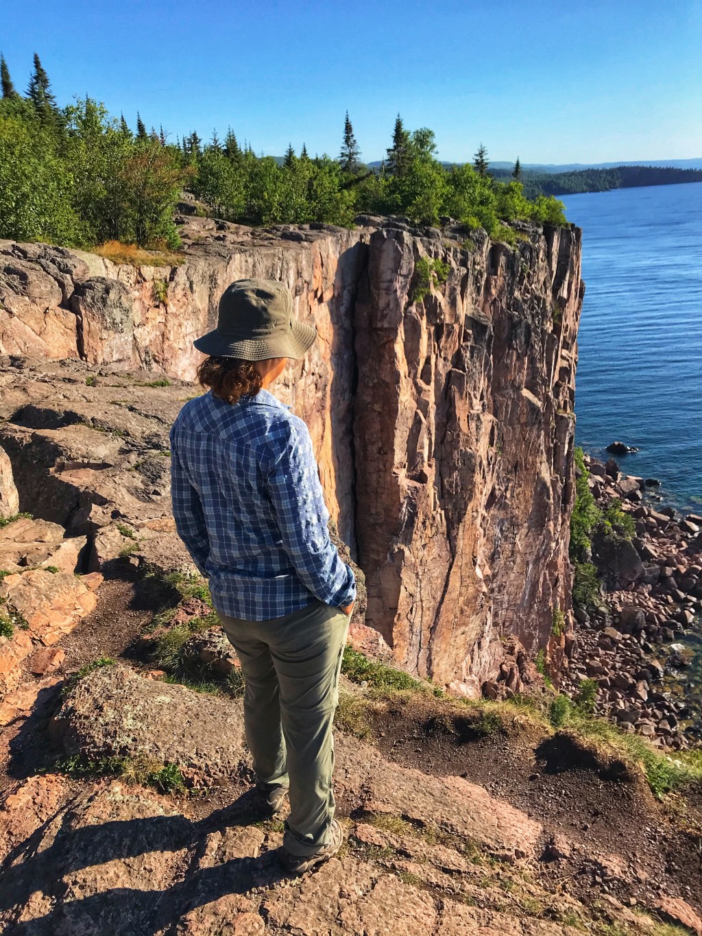 On our last morning, we walked up to Palisade Head for a view of Lake Superior from high above the cliff in the morning sun. As we crested the ridge, we stood face to face with a Peregrine falcon twenty feet away, perched on the rocky cliff edge.